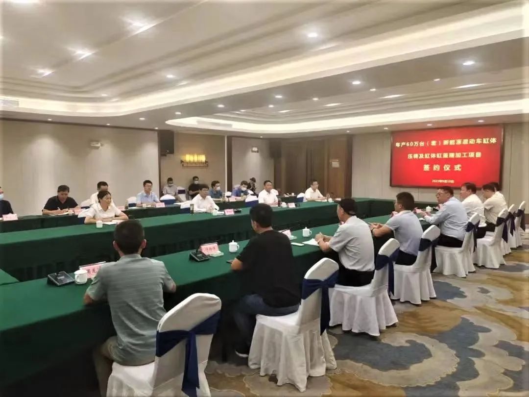 Recently, the signing ceremony with a subsidiary of Changyuan Donggu for the project "Annual output of 600,000 sets cylinder block die-casting parts for hybrid electric vehicles (HEVs) and fine finishing of cylinder blocks and heads" was successfully conducted in Laohekou City, Hubei Province.