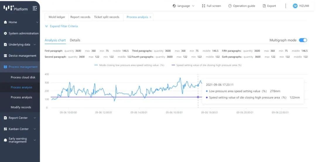 Yi-CMS focuses on two important areas of equipment and process of molding enterprises, providing customers with simple and easy-to-use equipment monitoring, efficiency analysis, process standards and parameter tracking management functions. The system is easy to deploy and fast to implement, helping customers with digital transformation. Yi-CMS will focus more on device interconnection and process data management, helping customers transform their business from single machine management to overall system integration.