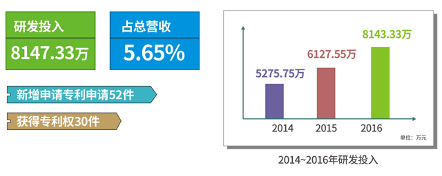 多年來,伊之密一直重視研發(fā)投入,以產(chǎn)品實(shí)力驅(qū)動(dòng)未來的增長。2016年繼續(xù)增加研發(fā)投入,促進(jìn)產(chǎn)品更新迭代,2016年研發(fā)費(fèi)用支出為8,147.33萬元,占比營業(yè)收入的5.65%,新增專利申請(qǐng)52件,獲得專利權(quán)30件,其中發(fā)明專利權(quán)1件。未來,伊之密還將持續(xù)加強(qiáng)研發(fā)投入,聚焦工藝應(yīng)用,成立德國研發(fā)中心,連接歐洲先進(jìn)成型技術(shù),成為裝備制造領(lǐng)域世界級(jí)企業(yè)。