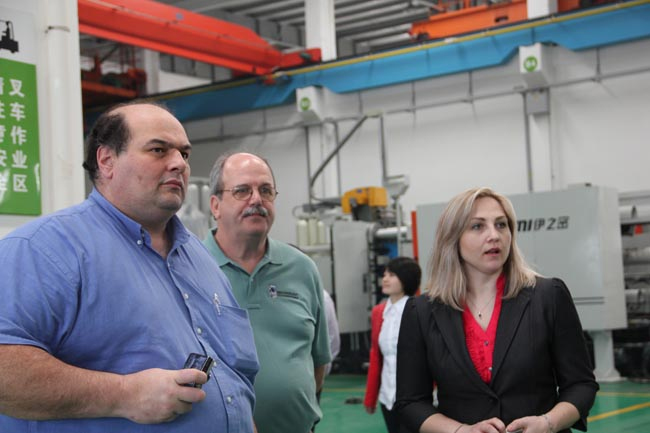 Fuschetti先生一行三人的到來,受到了伊之密總裁甄榮輝先生的熱情接待。甄總親自帶領他們在工業園區參觀了伊之密的壓鑄機裝配車間,在參觀期間,Fuschetti先生對伊之密的壓鑄機冷室機和實時控制機非常感興趣,并與甄總進行了愉快的交流。Fuschetti先生表示對伊之密的快速發展印象非常深刻并連連稱贊。