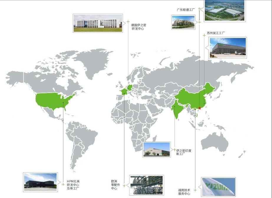 同時,伊之密繼續加強全球化布局。從北美銷售公司到法國零配件中心、比利時環保塑料創新中心、德國研發中心、印度子公司、越南技術服務中心,伊之密已經涉足美洲、歐洲、亞洲區域。