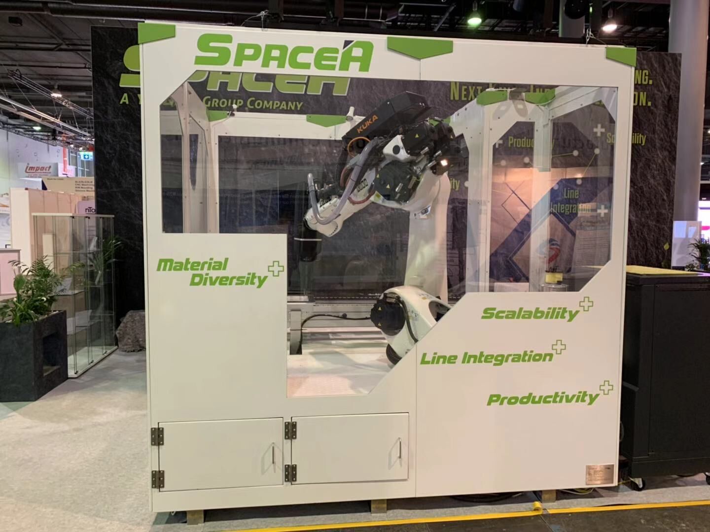 今年,德國(guó)伊之密和IKV合作推出首款創(chuàng)新產(chǎn)品——SPACE A機(jī)器人柔性增材制造系統(tǒng),它可以使用增材制造工藝(俗稱3D打印),也可以與其他工藝,如鑲件、減材制造等相互組合。