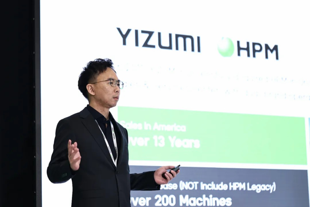 活動現場,伊之密董事長兼總經理甄榮輝先生發表了致辭。他首先回顧了2011年伊之密的重要里程碑——成功收購擁有超過百年歷史的美國知名機械制造商HPM及其全部知識產權。這一舉措極大地增強了伊之密在國際市場上的競爭力。