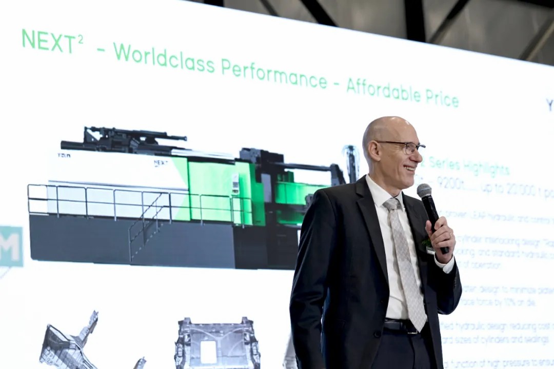 隨后,北美壓鑄協會(NADCA)主席 Mike Meyer先生受邀出席了活動,并發表了熱情洋溢的致辭。伊之密的眾多高層管理人員、合作伙伴及客戶齊聚一堂,共同見證了這一重要時刻。