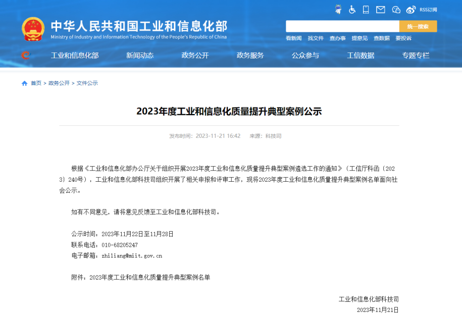 據介紹,為增強工業和信息化質量管理能力、推動質量技術創新應用、提升產品可靠性水平,及時發現、總結、推廣一批示范性強的先進經驗,今年9月工信部組織開展2023年度工業和信息化質量提升典型案例遴選工作,面向質量管理能力、質量技術創新應用、可靠性提升三大方向,挑選具有較強的代表性、創新性和可推廣性,對相關行業、供應鏈質量或企業質量提升具有較強借鑒意義和推廣價值的案例上榜。