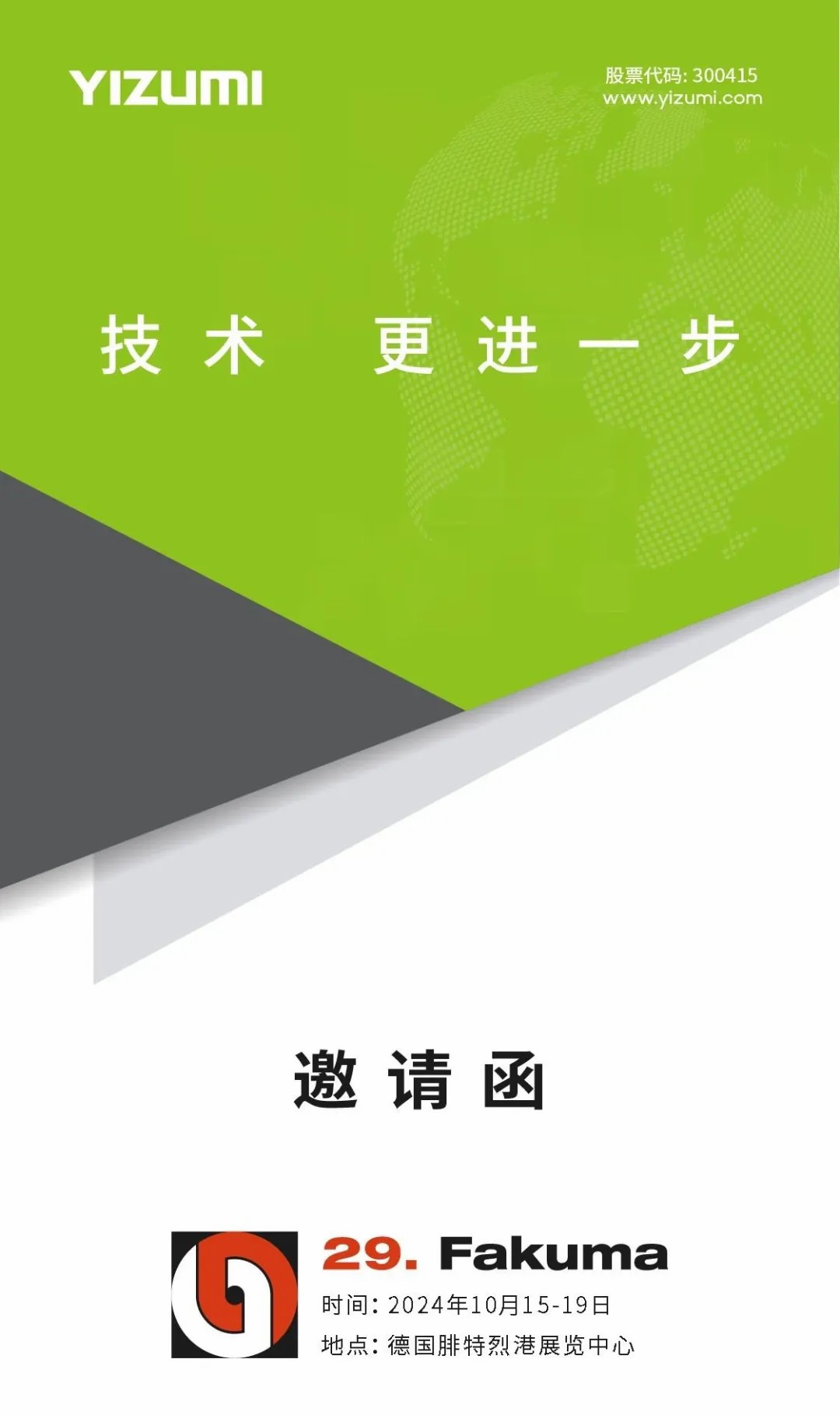 金秋十月,全球塑料加工行業的目光即將聚焦于德國腓特烈港。伊之密作為先進的成型裝備系統服務商,將攜先進產品及解決方案,參展2024年德國塑料工業展覽會(以下簡稱Fakuma),與世界共鑒注塑科技的璀璨未來。