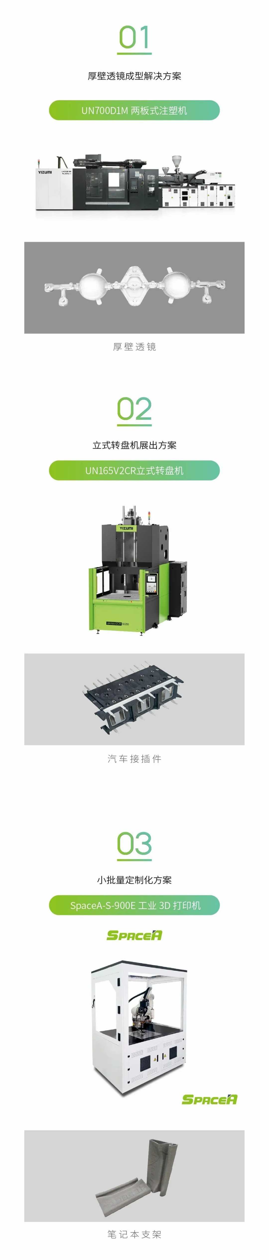 伊之密將展出UN700D1M, UN165V2CR, 2臺注塑機及SpaceA-S-900E工業3D打印機及其解決方案。