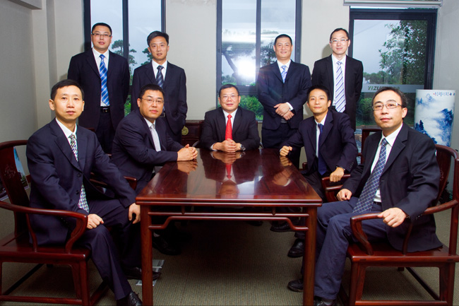 廖昌清先生(中)和伊之密注塑機事業部核心團隊成員在一起