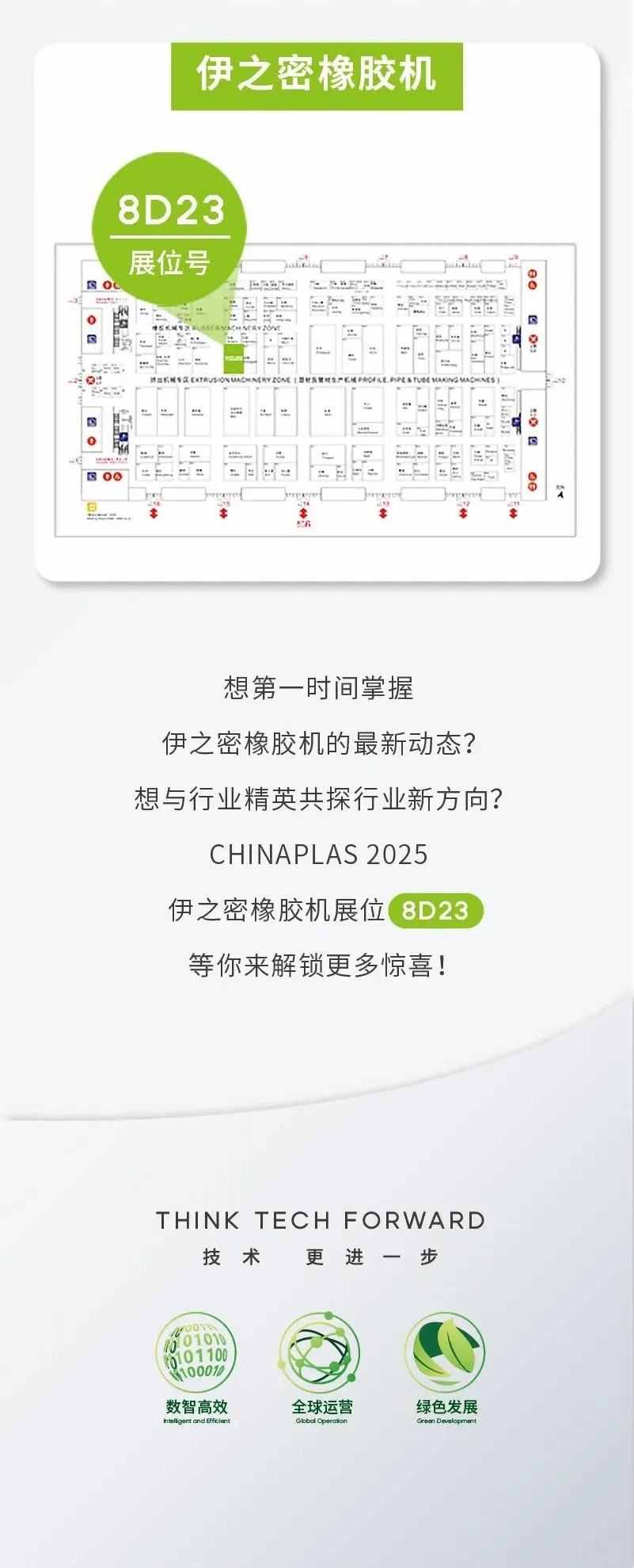 4月15至18日,伊之密橡膠機將在8D23展位迎接您的到來。屆時,由經驗豐富的工程師和行業專家組成的伊之密橡膠機專業團隊,將在現場為您提供咨詢服務,解答您的疑問,并與您共同探索橡塑行業的創新與發展。