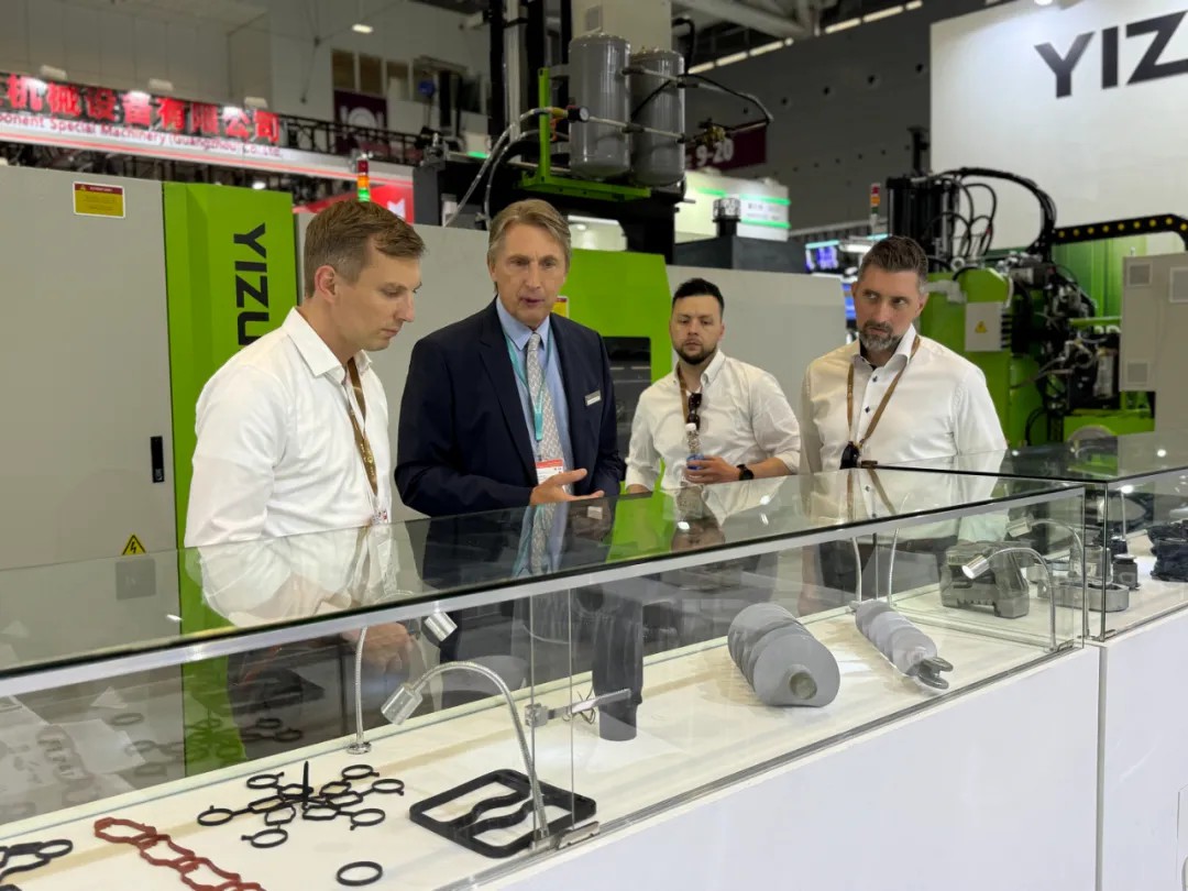 在展位8D23,伊之密橡膠機精心搭建了制品成型演示區,現場演示定制化橡膠密封圈成型解決方案。商客可以清晰看到橡膠機如何通過精準的溫度控制、壓力調節以及注射速度優化,確保每一個制品都能達到理想的物理性能與外觀質量標準。通過實際操作演示,商客深入了解伊之密橡膠機在制品生產中的工藝優勢,為其企業后續的生產決策提供有力參考。