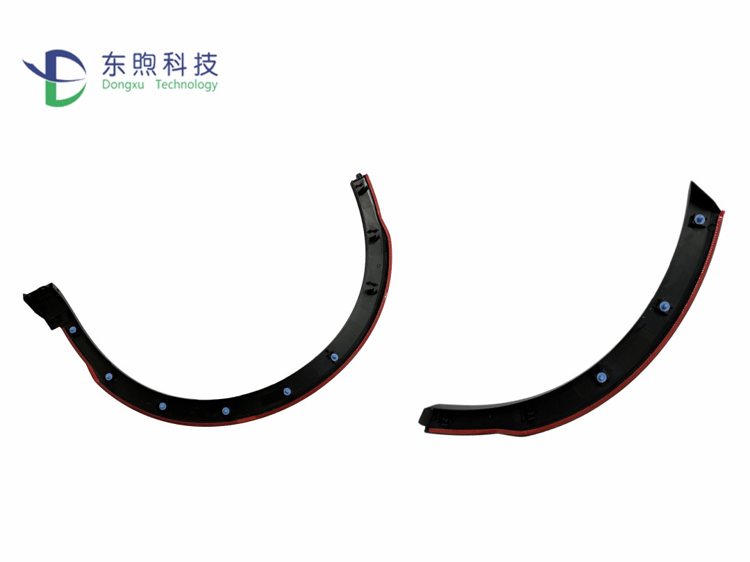 輪眉類產品為不規則曲面產品,且貼膠軌跡為弧形,在以往貼膠過程中對貼膠以及精度有著很大的挑戰。