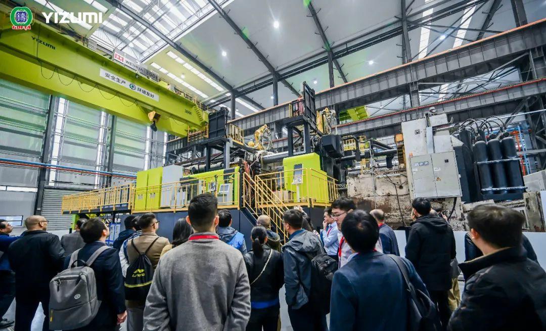 在伊之密超重型壓鑄機廠房,嘉賓們親眼目睹了伊之密全新LEAP9000壓鑄島、半固態鎂合金注射成型機UN3200MGII的壯觀景象;近距離領略了伊之密LEAP系列及HⅡ系列壓鑄機規模化生產線強大的生產制造能力。