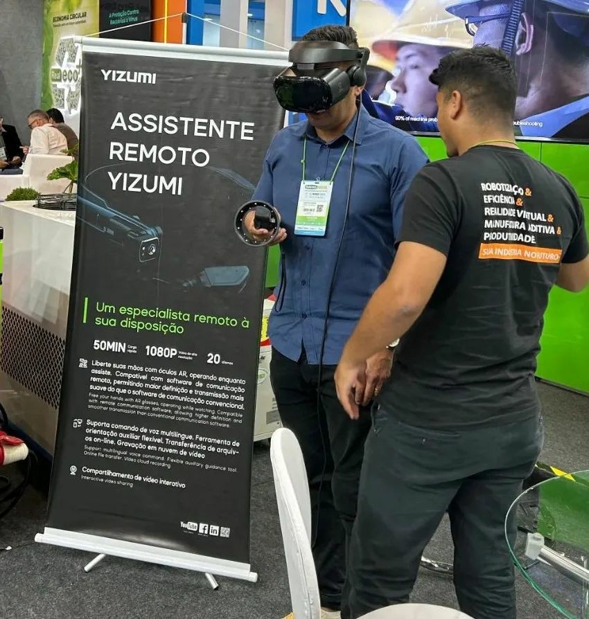 展會上,伊之密首次向世界展示其自主研發(fā)的AR企業(yè)云平臺,基于工業(yè)互聯(lián)網(wǎng)實時數(shù)據(jù)采集技術,結(jié)合AR技術和建模,為客戶提供遠程協(xié)同、產(chǎn)品展陳、遠程培訓等服務,減少協(xié)作成本,提升溝通質(zhì)量,為客戶帶來數(shù)字化交互新體驗。同期,還有由伊之密巴西代理提供的虛擬現(xiàn)實VR眼鏡,適用于售前服務,為客戶留下深刻的印象。