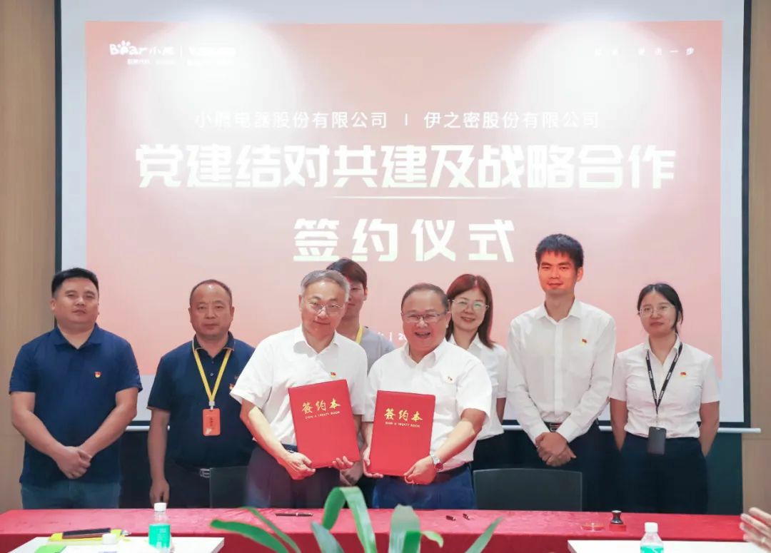 6月30日,廣東伊之密股份有限公司和小熊股份有限公司在伊之密全球創新中心舉行黨建結對共建及戰略合作簽約儀式。出席簽約儀式的領導有伊之密董事兼事業部副總經理李東海、黨委書記曾繼華以及小熊電器黨委書記郭禮龍、公司制造總經理吳光錦、采購管理部總監周志樹、模塑管理部總監周顯龍等。