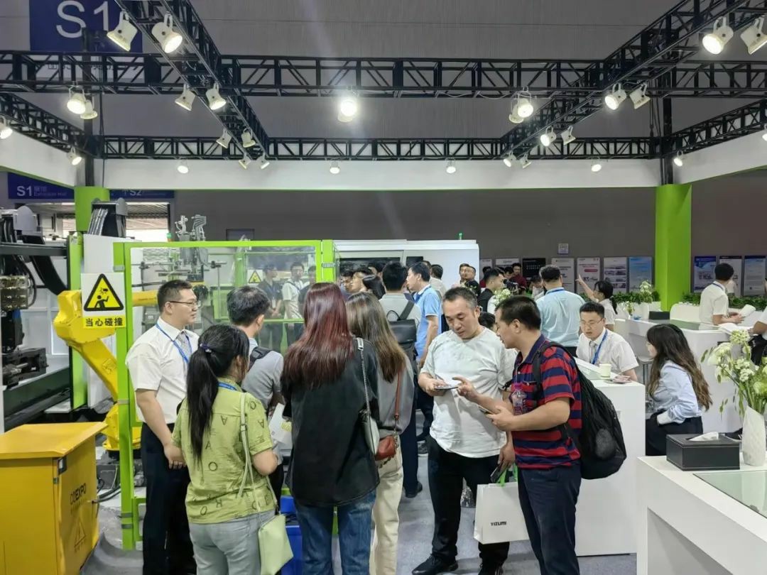 現場看到,伊之密帶來的是雙色汽車光學件成型方案、汽車側門IMC面板成型方案、微量保存管成型方案和Yi+Platform伊之密智造平臺,吸引各方客商駐足咨詢。