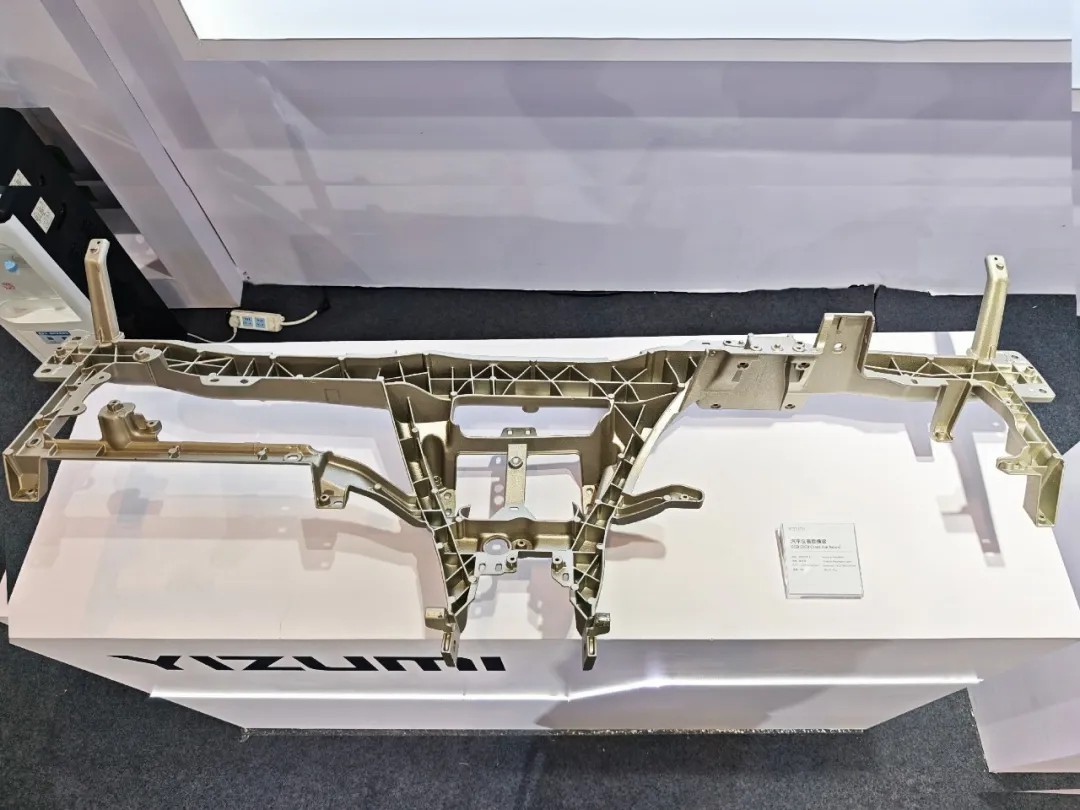 本次展會,伊之密以制品詮釋技術(shù)縱深。展臺上,一系列高精度、高性能的制品吸引了眾多觀眾的目光。其中,汽車儀表盤橫梁、方向盤等鎂合金結(jié)構(gòu)件尤為引人注目。這些制品質(zhì)地輕盈、結(jié)構(gòu)復雜,充分展現(xiàn)了伊之密MG系列半固態(tài)鎂合金注射成型機在輕量化領(lǐng)域的應用。