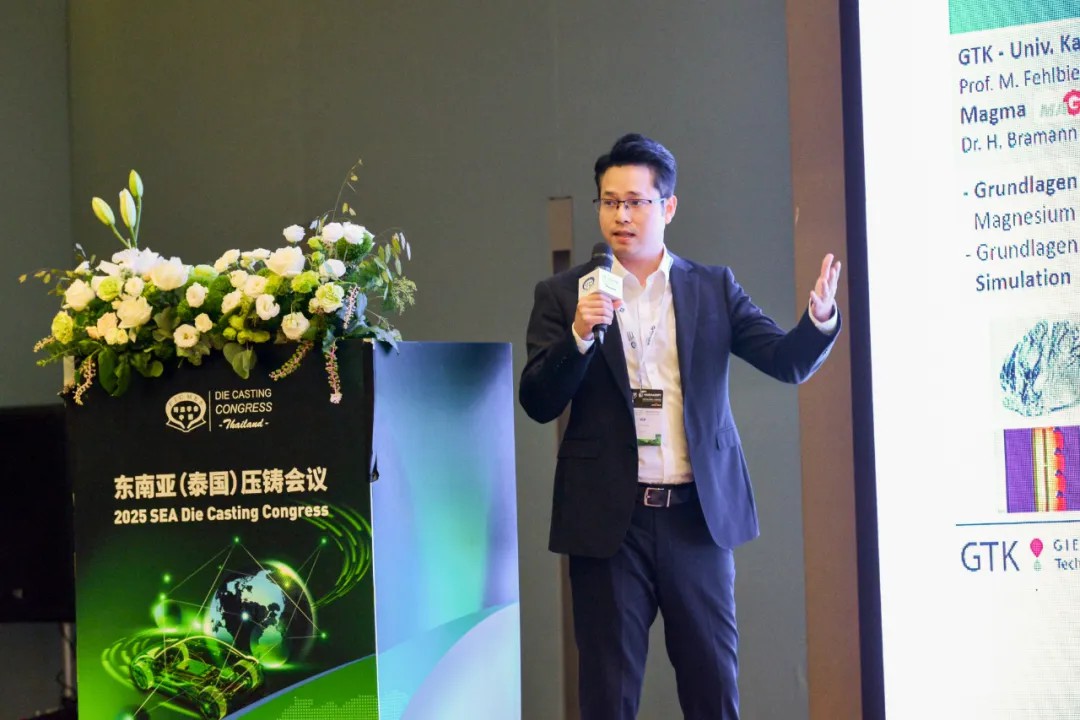 在5月29日的技術論壇上,伊之密壓鑄機事業部半固態鎂合金全球銷售經理梁嘉堯先生發表題為《鎂合金半固態觸變與鋁合金半固態流變成型裝備技術進展》的專題報告,系統闡述了企業在東南亞市場戰略布局深化及先進金屬成型裝備領域的技術突破成果。