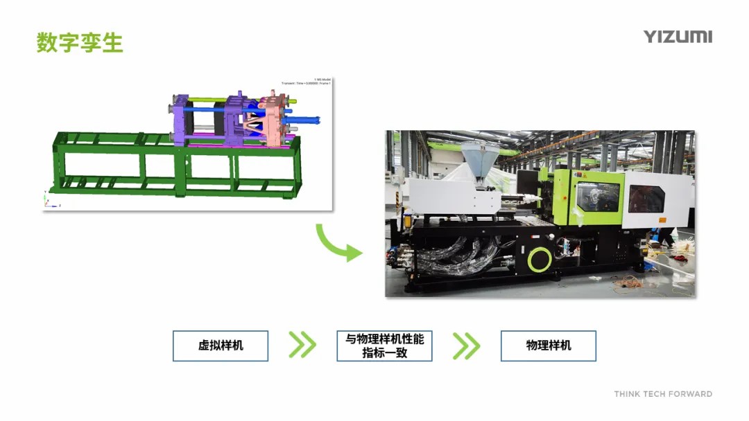 在數字孿生標準制定過程中,伊之密專家針對行業普遍存在的概念模糊、技術路徑分歧等問題,系統梳理了數字孿生技術在注射成型領域的應用邏輯。從物理實體與虛擬模型的實時映射機制,到工藝參數優化、設備預測性維護等具體應用場景,伊之密結合自身在精密機械制造領域積累的數萬臺設備運行的數據,提出了“注射成型裝備全生命周期數據閉環”的技術框架。