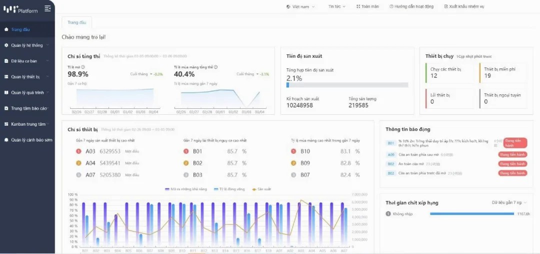 ③多語(yǔ)言看板:中/英/越南語(yǔ)實(shí)時(shí)切換,當(dāng)?shù)毓芾韺涌呻S時(shí)查看OEE、能耗等指標(biāo)。?